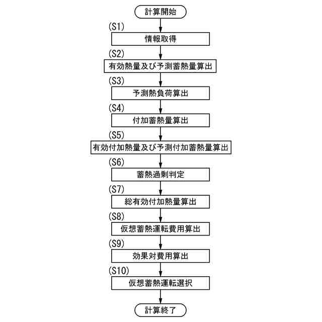 前記付加蓄熱量算出手段、前記有効付加熱量及び予測付加蓄熱量算出手段、前記総有効付加熱量算出手段、前記仮想蓄熱運転費用算出手段、前記効果対費用算出手段及び前記仮想蓄熱運転選択手段の動作により、選択されるべき前記仮想蓄熱運転を追加で選択する、
