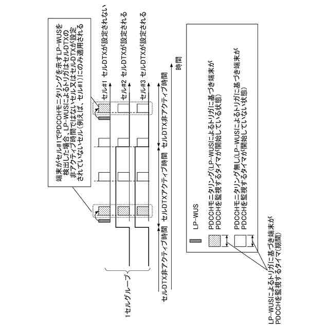 従来、LP-WUSとセルDTX/DRXとを同時に使用する場合における動作が明確にされておらず、端末が適切にLP-WUSモニタリング及びセルDTX/DRXに基づく動作を実行できないおそれがある。