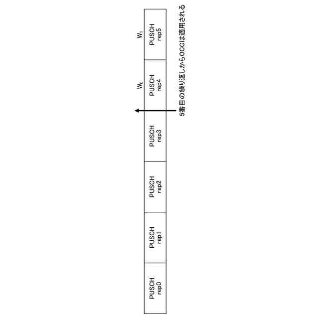 【解決手段】端末は、DFT-s-OFDM(Discrete fourier transform spread Orthogonal Frequency Division Multiplexing)又はOFDMにより変調される物理上りリンク共有チャネルの繰り返しに適用するOCC(Orthogonal Cover Code)を決定する制御部と、前記OCCを適用した前記物理上りリンク共有チャネルの繰り返しを基地局に送信する送信部とを有し、前記制御部は、前記物理上りリンク共有チャネルの繰り返しに適用するOCCの適用範囲を決定する。