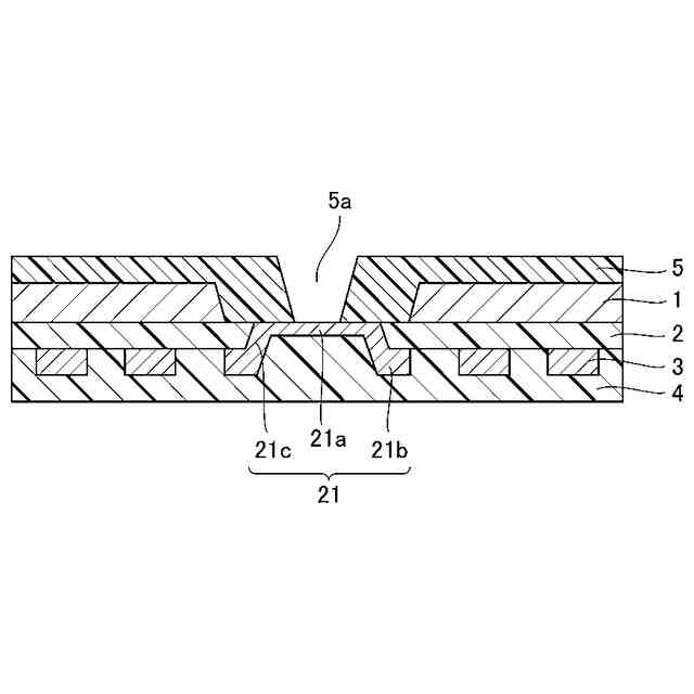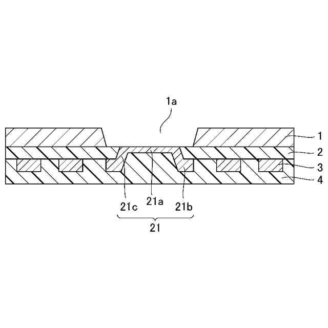 前記第一層間接続部が、前記第一絶縁層を含む層領域に位置する底面部と、前記第一配線層を含む層領域に位置し開口を有する頂面部と、前記底面部の外周部と前記頂面部の内周部と接続している側面部とを有し、