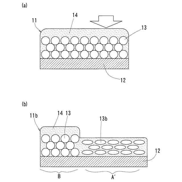 (a)(b)この発明にかかる積層体の圧縮前後の模式図