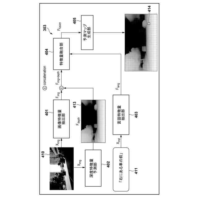 ところで、ユーザの指示が「右にある車の前」のように物標との相対的な位置関係を含む場合、RGB画像の画像特徴量に言語特徴量を融合させても、十分な精度が得られない場合がある。