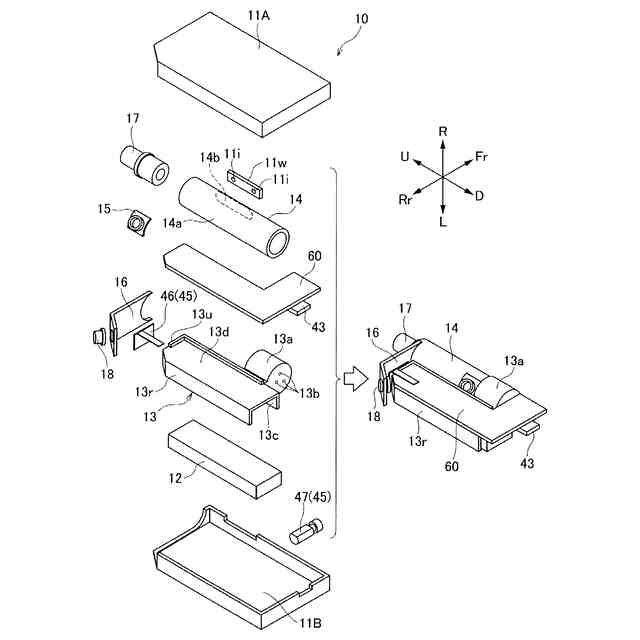 図13のカートリッジ収容部の底部の分解斜視を模式的に示した図である。