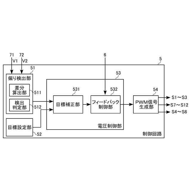 前記偏り検出部は、さらに、前記電圧差の大きさに応じて、前記中性点電位の偏り度合を検出しており、