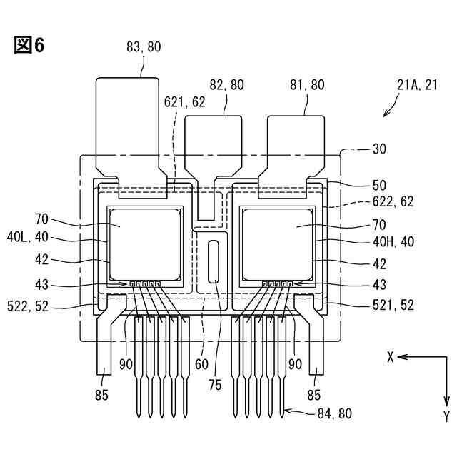 複数の半導体モジュールは、第1半導体モジュール(21A)と、第1半導体モジュールよりも信号端子の数が少ない第2半導体モジュール(21B)と、を含む。