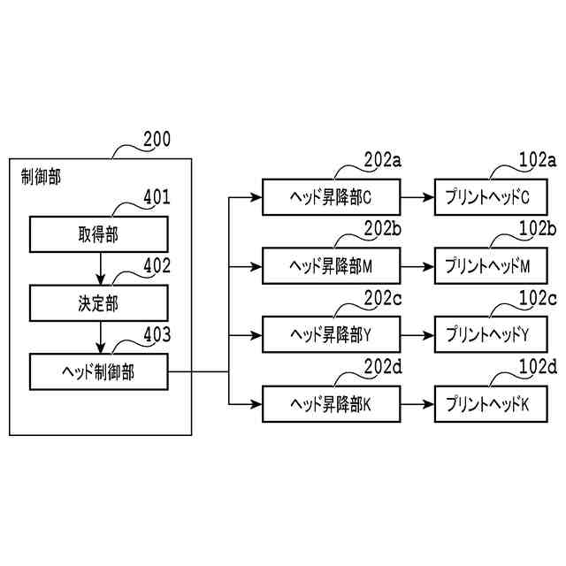 プリントヘッドの位置の制御に関する機能構成を示す図である。