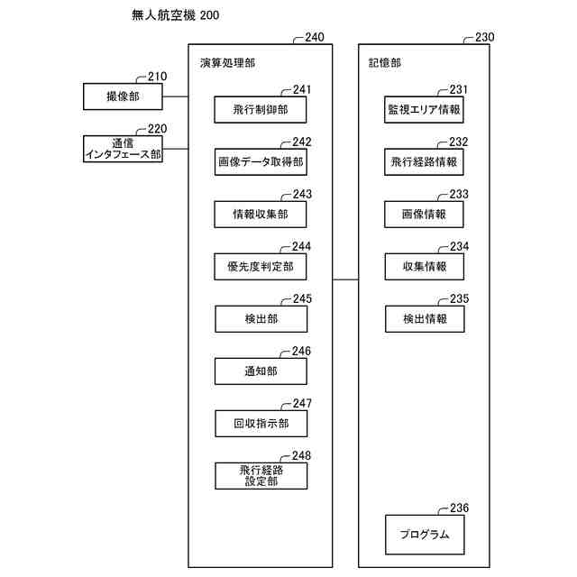 前記判定部は、無人航空機が予め設定された飛行経路を飛行中に収集した情報に応じて、監視対象エリアを分割した各領域における、検出した異物を回収する際の優先度を判定する