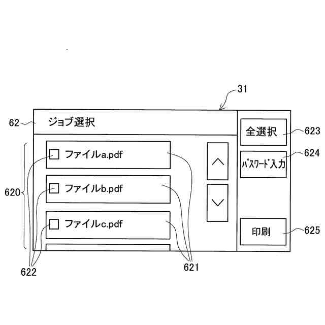 る。特許文献1には、待機画面からの印刷の手順として、蓄積されたデータの一覧を表示