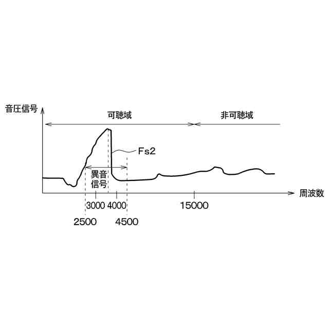 前記信号変換回路は、前記異音信号の周波数が所定の帯域幅を有する周波数帯域に跨る場合、前記異音信号の周波数の少なくとも一部が、人の可聴周波数帯域における他の周波数に比較して人の聴覚の感度が高い周波数帯域である高感度帯域に含まれるように前記可聴化信号を求め、前記可聴化信号における前記高感度帯域より高い周波数帯域における所定の周波数以上の帯域の音圧信号を除去する。