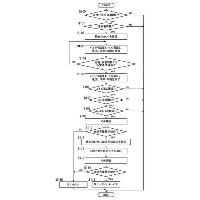 使用済みの二次電池の再利用に際し、例えば、リチウムと遷移金属との比(以下、Li/Me比と言う)が変化している場合や、コバルト、マンガン等の遷移金属が溶出している場合等のように、電極材料が化学劣化しているときは、化学処理が必要となる。一方、活物質と電解質の界面が剥離している場合のように、電極材料の化学劣化ではなく、電極構造が劣化している場合には、化学処理をせずに、再利用することが可能である。従って、使用済みの二次電池を再利用する場合、二次電池の劣化状態に応じて仕分ける必要がある。
