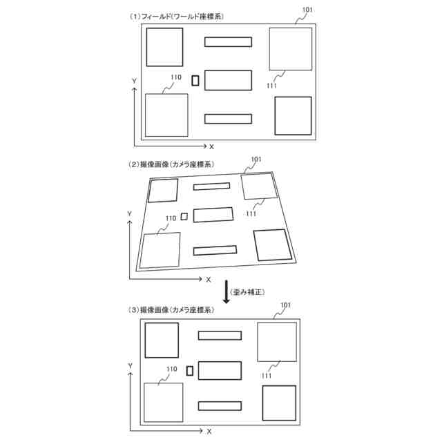 上記構成例によれば、表面にデザインを有するフィールド上に複数種類の多角形が配置されたパターン画像を投影することで、フィールドのデザインがノイズとして作用しても、投影されたパターン画像をより正確に検出することができる。そのため、ノイズの影響を抑制した、投影装置の座標系と撮像装置の座標系の第1対応関係を取得することができる。