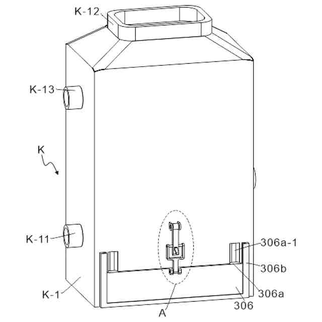 前記処理機器(K)は、ハウジング(K―1)と、それぞれ前記ハウジング(K―1)の外壁に設けられた吸気孔(K―11)、排気口(K―12)、給水口(K―13)及び排水口(K―14)と、前記ハウジング(K―1)の内部に設けられたヒートパイプ(K―15)とを含み、