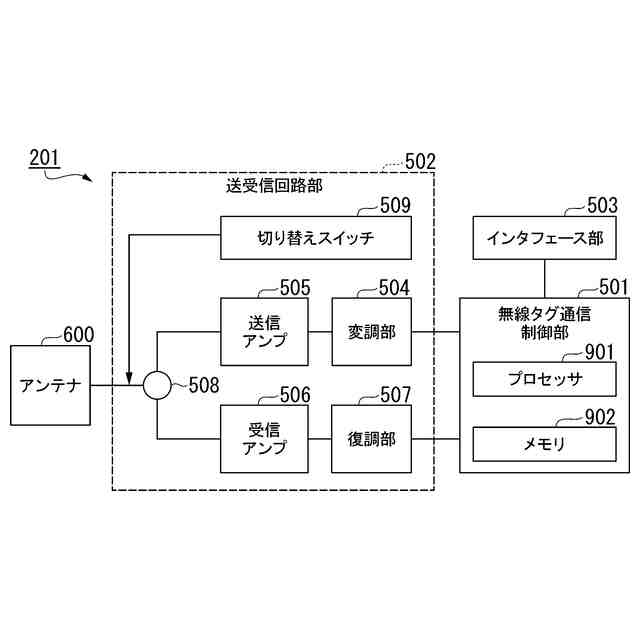 実施形態における無線タグ通信装置201の構成の一例を示す図。