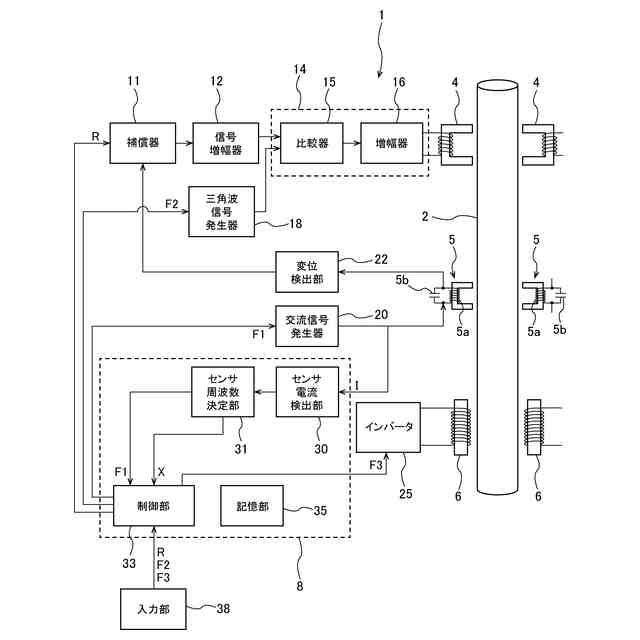 磁気軸受およびその周辺装置には、浮上対象の回転体を浮上させる電磁石、回転体を回転させるためのモータ、回転体の位置を検出する変位センサ等がある。これら電磁石、モータ、変位センサ等に使用される複数の周波数が互いに干渉すると、それぞれの装置で予期せぬ不具合が生じることがある。したがって、磁気軸受およびその周辺装置で使用される周波数は、干渉しないように適切に制御される必要がある。