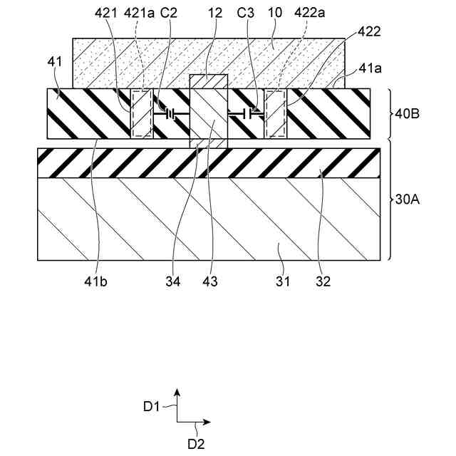 前記第1導電体は、前記第1方向および前記第2方向の双方と交差する第3方向に延びており、