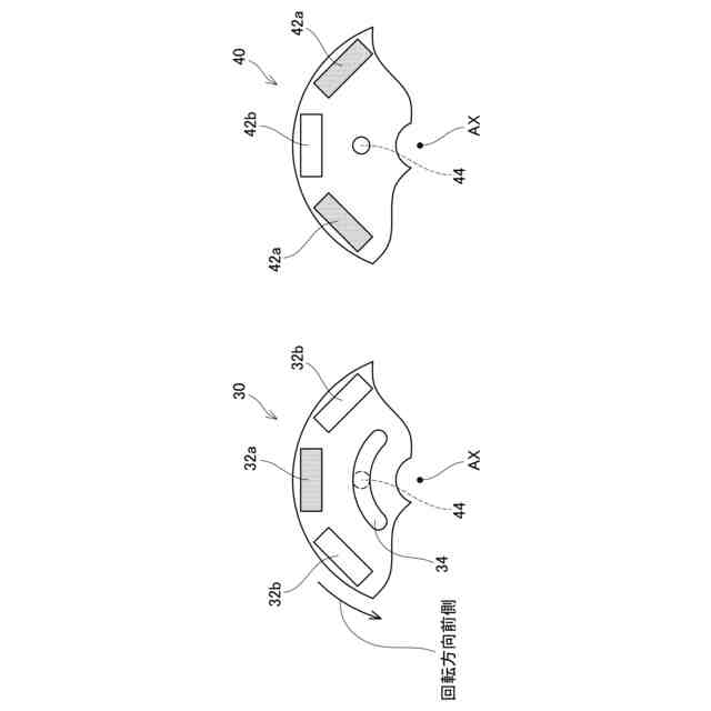 すなわち、各回動ロータコア40は、固定ロータコア30に対して相対的に回動可能である。回動ロータコア40は、回転軸AXに沿う方向において固定ロータコア30の両側に配置されている。言い換えると、回転軸AXに沿う方向において、2つの回動ロータコア40の間に固定ロータコア30が配置されている。
