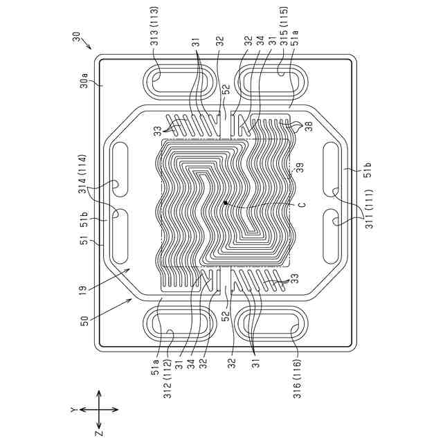 こうした燃料電池のセパレータとしては、例えば特許文献1に記載の燃料電池セパレータがある。特許文献1に記載の燃料電池セパレータには、冷却水が導入される冷却水入口マニホールドと、冷却水が流れる流路部と、同流路部からの冷却水が排出される冷却水出口マニホールドとが設けられている。冷却水出口マニホールドは、上記流路部を挟んで冷却水入口マニホールドとは反対側に配置されている。流路部の周囲には、互いに隣り合う2つのセパレータ同士の間をシールする環状のシール材が設けられている。また、上記シール材の内周面には、シール材の内周側に突出する端部流れ防止片が設けられている。端部流れ防止片により、流路部のうち冷却水入口マニホールドから冷却水出口マニホールドに流れる冷却水がシール材の近傍を流れること、所謂脇流れが抑制される。これにより、発電部の冷却効率を高めることができる。