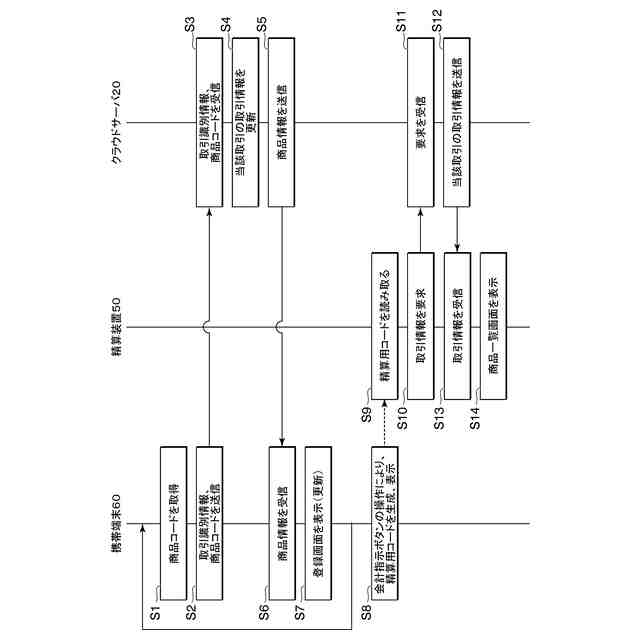 販売システム1は、携帯端末60を使用して商品を登録し、精算装置50を使用して精算するといった態様のセルフサービス(以下、サービスAと称する場合がある)を提供する。つまり、サービスAは、顧客自身が商品登録と精算とを行うが、商品登録に関しては携帯端末60を使用し、精算に関しては精算装置50を使用するといった態様のセルフサービスである。