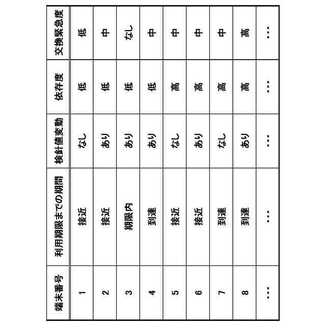 前記決定部は、前記管理テーブルを参照して前記交換緊急度を決定する、