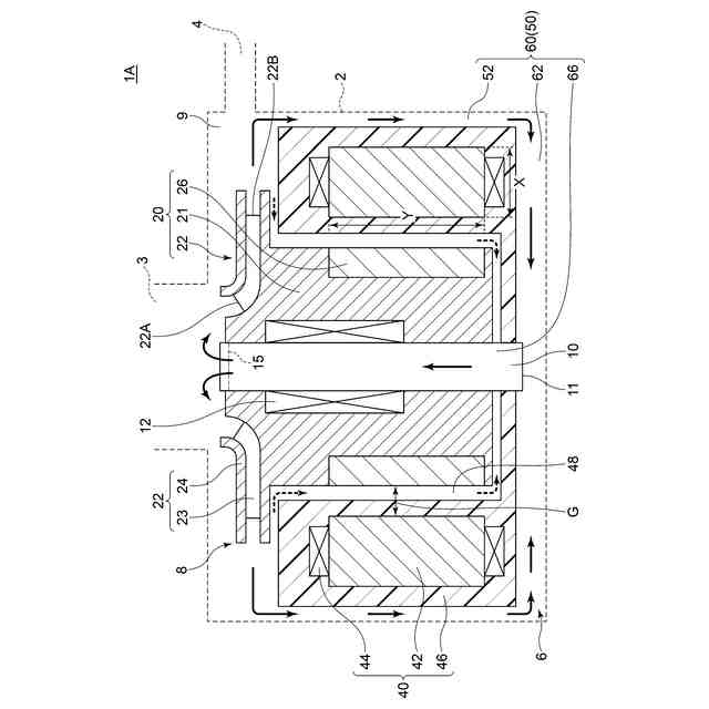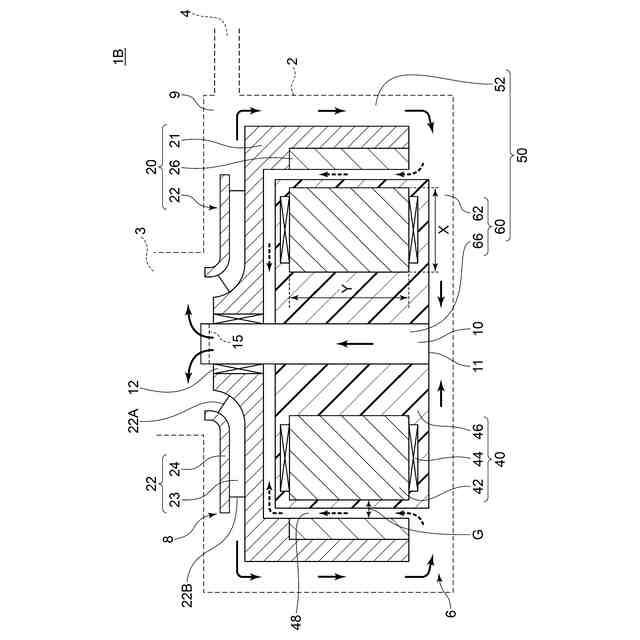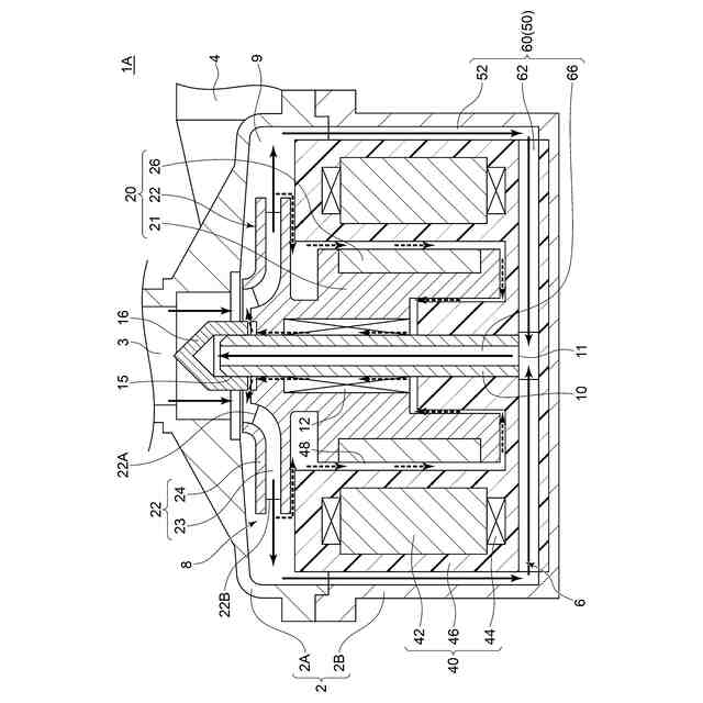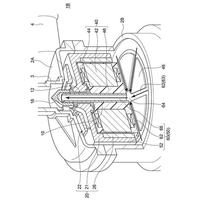 第1流路の下流端に接続され、マグネット及びステータコアの径方向内側において、マグネット及びステータコアが占める軸方向位置範囲を通過する第2流路