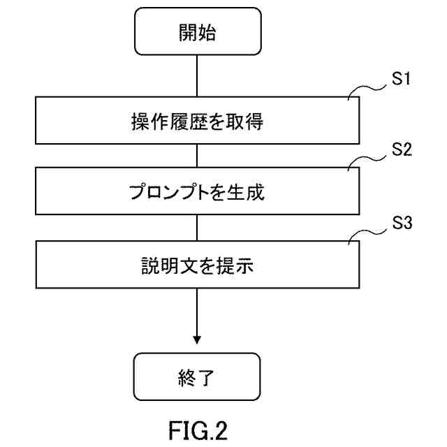 本発明の第3の視点によれば、端末に搭載されたコンピュータに、自装置にインストールされた、複数のアプリケーションそれぞれの操作履歴を取得する、取得処理と、前記複数のアプリケーションのうち、利用者が使い方の説明を求めるアプリケーションとして選択されたアプリケーションの前記操作履歴を用いて、言語モデルに入力するためのプロンプトを生成し、前記生成されたプロンプトを用いて前記言語モデルから得られた前記選択されたアプリケーションの使い方に関する説明文を前記利用者に提示する、制御処理と、を実行させるためのプログラムが提供される。
