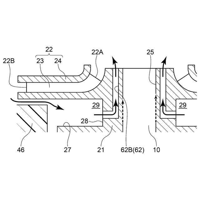 前記第2貫通孔は、前記空隙の径方向内側を通過し、前記空隙の下流側かつ前記軸受と前記支持軸との間の軸受隙間の上流側に前記キャビティを連通させる