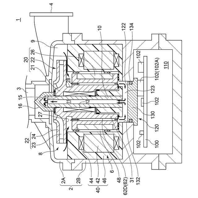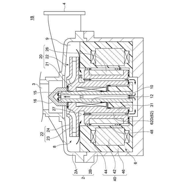 しかしながら、特許文献1記載の電動ポンプのように、インペラ通過後の流体の一部をケーシング内で循環させる場合、循環流体に随伴する異物がロータとステータとの間の空隙に噛み込んでしまうリスクがある。このため、ロータとステータとの間の空隙を十分に確保する必要があり、マグネットとステータコアとの間の磁気ギャップを狭くすることが難しい。