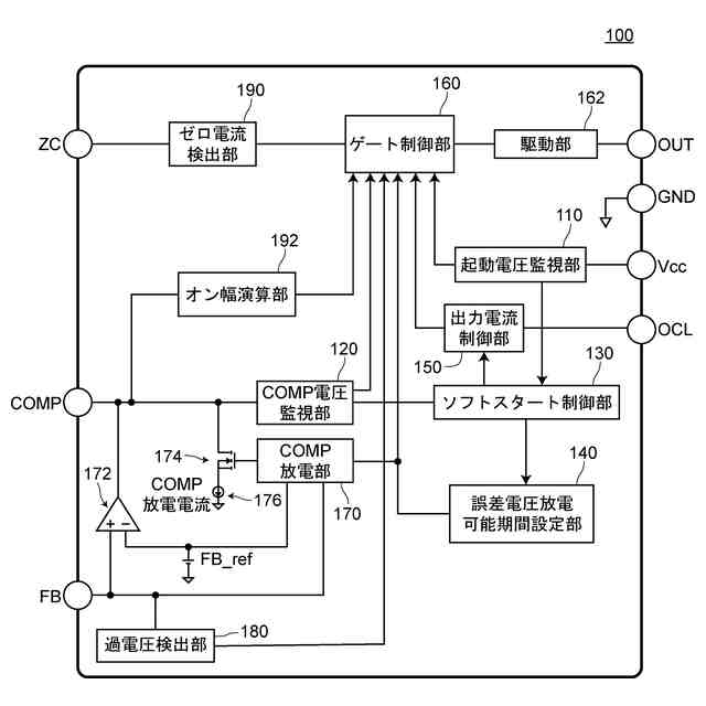 従来の制御回路900は、図12に示すように、起動電圧監視部910と、出力電流制御部950と、ゲート制御部960と、駆動部962と、ゼロ電流検出部990と、オン幅演算部992と、エラーアンプ972と、過電圧検出部980とを備える。