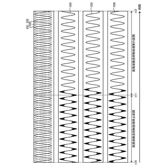 本開示の電力変換装置において、前記制御装置は、前記高周波横流信号に対して所定のゲインをかけて、複数の前記スイッチング素子のスイッチング周波数及びスイッチング周期の少なくとも一方を調整する。