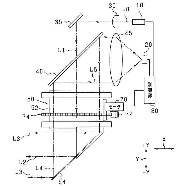【解決手段】回転ミラー(54)は、所定の回転軸を中心として360°回転可能である。基準物体(85)は、回転ミラーから外部空間までの間に配置され、距離算出部(80)により算出されるべき真の距離が既知の基準距離であり、透明状態と不透明状態とに変化できる。距離算出部は、基準物体を不透明状態に変化させて基準物体によりレーザ光を反射させて測定した測定時間に基づき算出した基準物体までの距離と基準距離との相違に基づいて補正値を算出し、基準物体を透明状態に変化させて基準物体をレーザ光が透過する状態で測定した測定時間と補正値とに基づいて物体までの距離を算出する。
