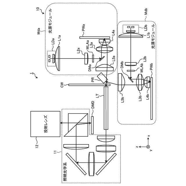 【解決手段】第1光源と、第1光源から出射された光源光から互いに異なる複数の波長の光源光を出射させる複数の領域を有する第1蛍光体ホイールと、を含む第1光源モジュールと、第2光源と、第2光源から出射された光源光から互いに異なる複数の波長の光源光を出射させる複数の領域を有する第2蛍光体ホイールと、を含む第2光源モジュールと、複数のフィルタ領域を含むカラーホイールと、を備え、カラーホイールは、複数のフィルタ領域の境界部であるカラースポークが、第1カラー側スポットから第2カラー側スポットの順に、または、第2カラー側スポットから第1カラー側スポットの順に通過するように配置されている。