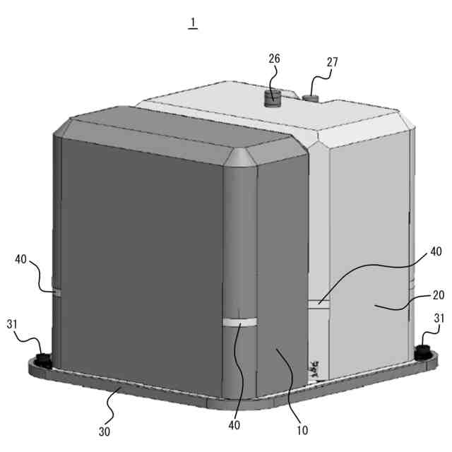 図1は、本開示の一実施形態に係る自走式清掃装置1の構成の一例を示す外観斜視図である。図2は、図1の自走式清掃装置1の内部構成の一例を示す斜視図である。図1及び図2を参照しながら、一実施形態に係る自走式清掃装置1の構成の一例について主に説明する。自走式清掃装置1は、屋内又は屋外に位置する床面上を自律移動しながら、当該床面を清掃する。