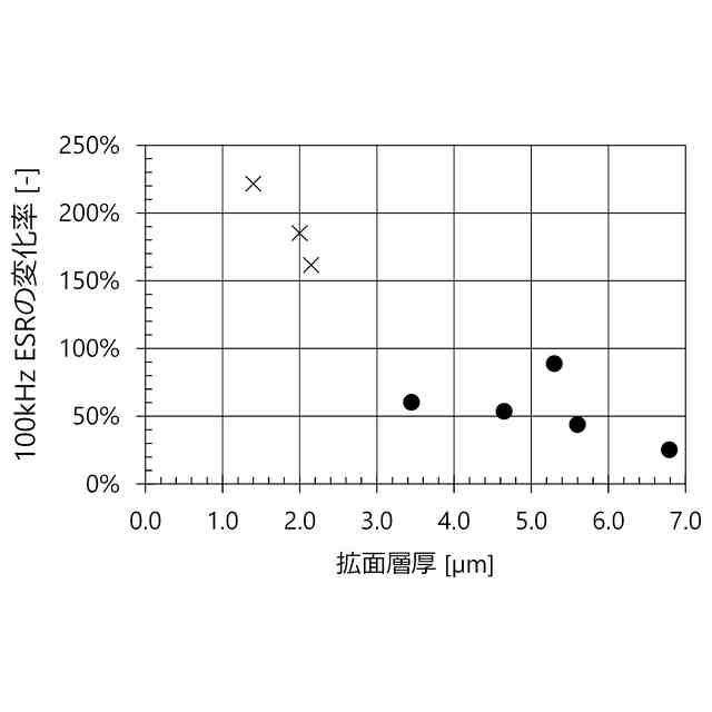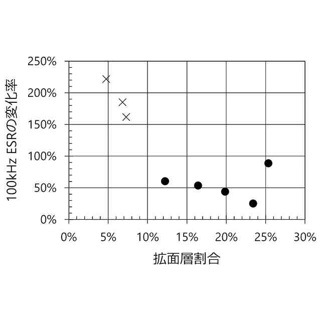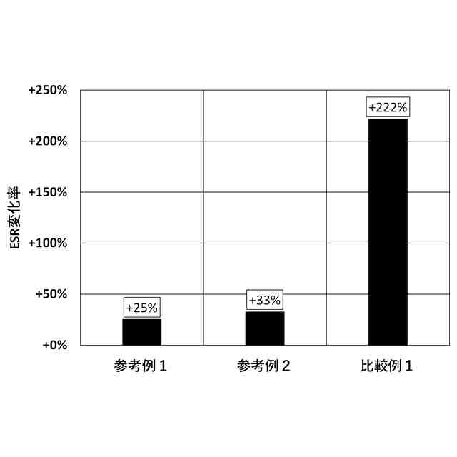 例えば、許容リプル電流は電解コンデンサのESRに影響して制限を受ける。また、固体電解コンデンサのESRが高いと、固体電解コンデンサの放電時にESRによる電圧降下が起こり、固体電解コンデンサの充電時にESRによる電圧上昇が生じる。つまり、固体電解コンデンサが電圧変動を起こす。そのため、ESRが高い固体電解コンデンサは、電圧の平滑能力が低くなる。従って、よりESRが低い固体電解コンデンサが要望される。
