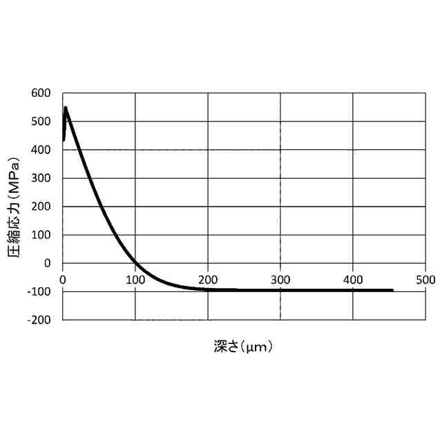 圧縮応力値が最大となる深さm[μm]が0μmより大きく、