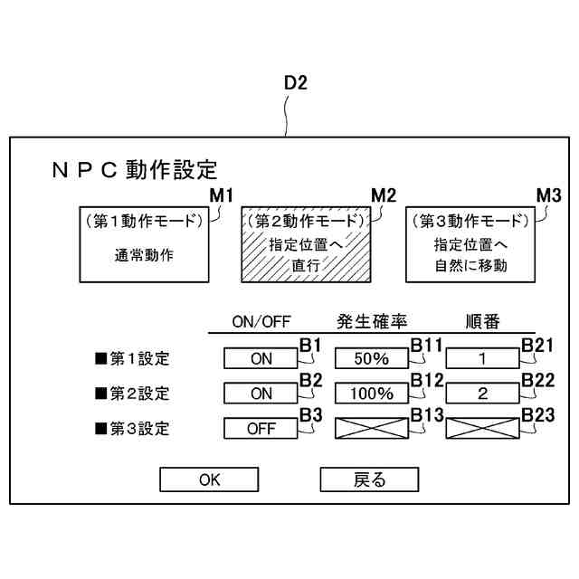 従来、仮想のゲーム空間内にユーザの操作により直接的に動作が制御されるプレイヤオブジェクトと、ユーザの操作によっては直接的にその動作が操作されないノンプレイヤオブジェクトが登場するゲームが知られている。例えば非特許文献1には、ノンプレイヤキャラクタが行う動作をユーザが設定できるゲームが開示されている。このゲームでは、ユーザが所定のボタンを押すと、ノンプレイヤキャラクタがユーザにより設定された動作を行うシーンに切り替わる。