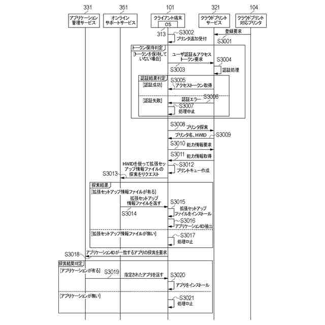 本実施例において、印刷設定拡張アプリをインストールする処理を示すシーケンスの一例を示す図である。