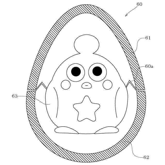 従来、特許文献1においては、子供や玉子を模した形状を呈する産み出し体とこの産み出し体を産む母体より成るぬいぐるみや人形等の玩具であって、母体に産み出し体の産み出し口を、この産み出し口に連続して産み出し道をそれぞれ設けると共にこの産み出し道の内面に比較的毛足の硬い毳状の短毛を当該短毛が産み出し口に向う方向に斜めに倒れた状態として密生した構成、が開示されている。
