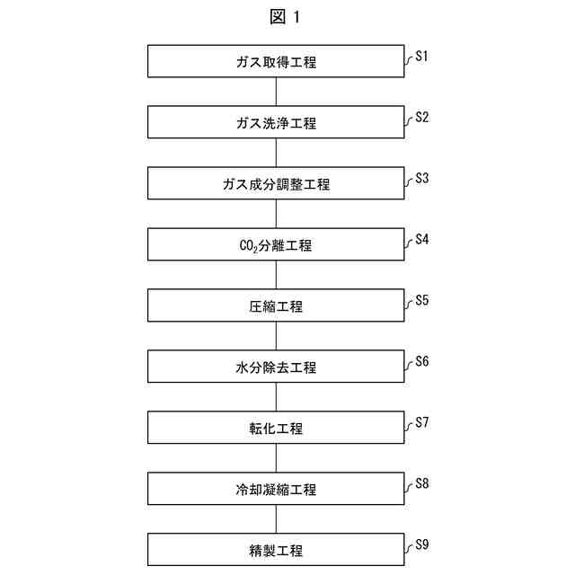 【解決手段】廃棄物由来ガス(G1)の組成を調整し、一次調整ガス(G2)とするガス成分調整工程(S3)と、一次調整ガス(G2)から、少なくとも一部の二酸化炭素を選択的に分離し、二次調整ガス(G3)とするCO