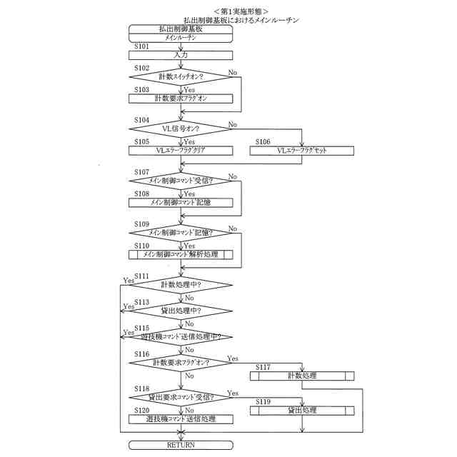 第1実施形態において、払出制御基板におけるメインルーチンの処理の流れを示すフローチャートである。