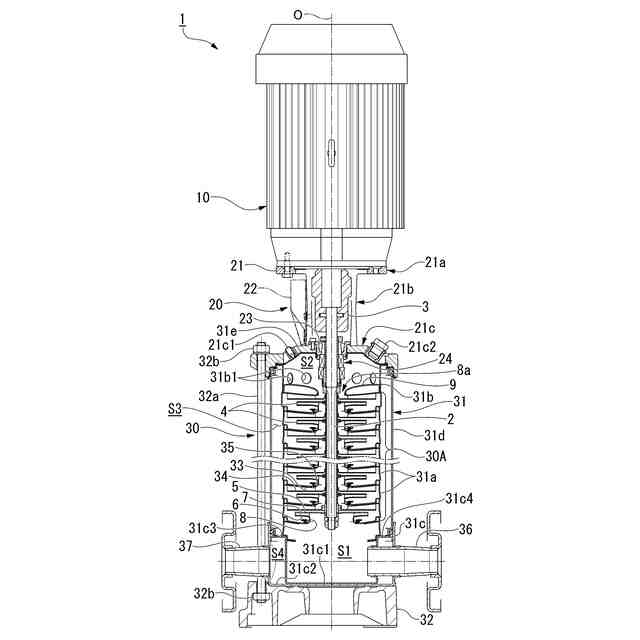 請求項1に記載の立形多段ポンプ。