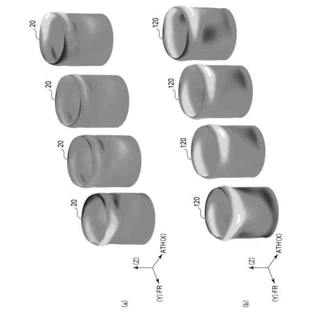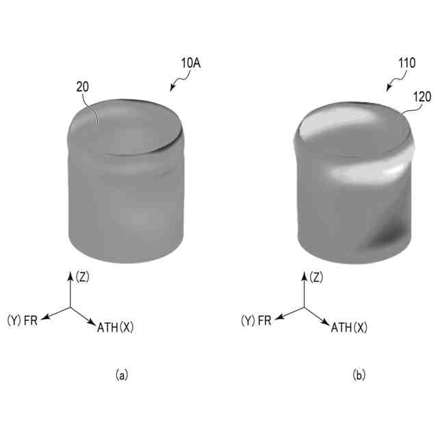 実施例1及び比較例1にかかるシリンダボアの実働時に起こる変形のシミュレーション結果を示す三次元グラフ。