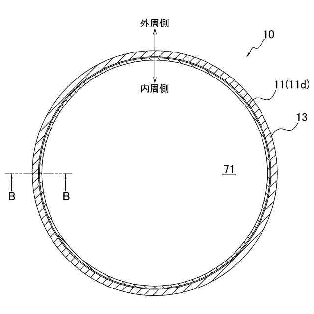 前記軸方向に対して傾斜する内周側の面である第1側面(13b2)と、