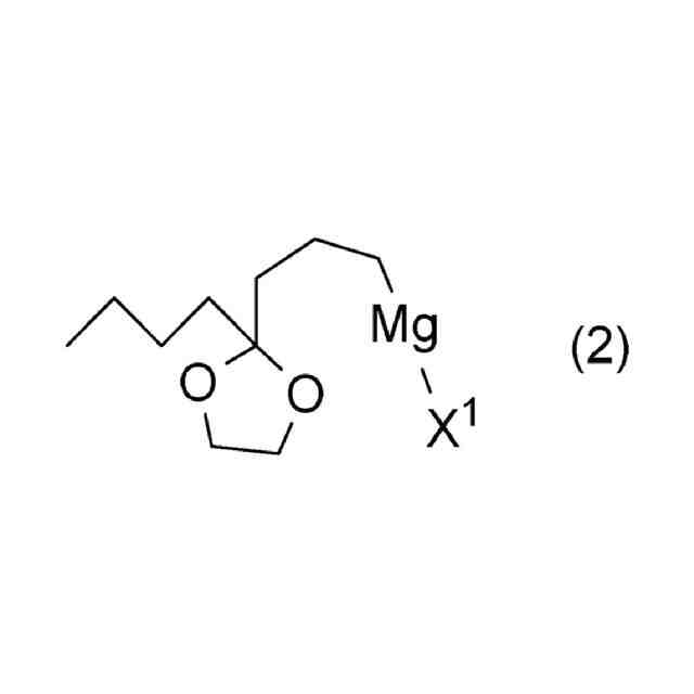 で表される5-(2-ブチル-1,3-ジオキソラン-2-イル)-1-メチルペンチル=アセテートを酸又は過酸化物の存在下、ケタールを脱保護することにより、下記式(5):