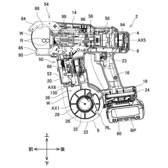 特許文献1に、鉄筋結束機が開示されている。鉄筋結束機は、ワイヤを送る送りユニットと、ワイヤを鉄筋の周りに案内する案内ユニットと、ワイヤを備えるリールをリール回転軸周りに回転可能に支持するリール支持部材と、前記送りユニットとリール支持部材との間に配置されており、ワイヤを送りユニットに向けて案内するワイヤ案内部材と、ワイヤと前後方向に当接可能な当接体と、を備えている。