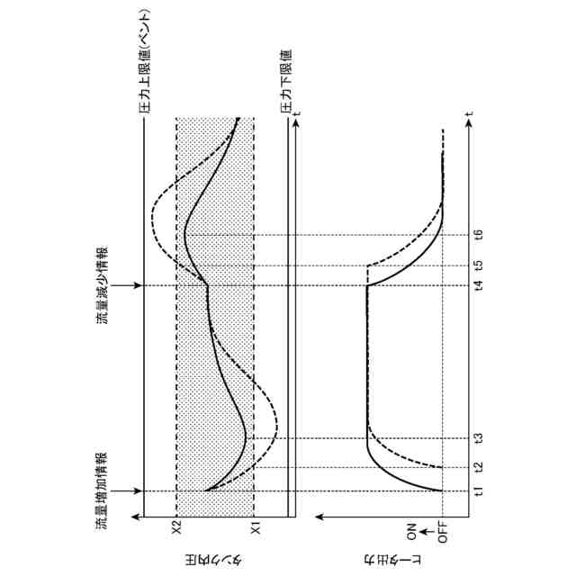 図3は、燃料タンクの内部圧力を調整する制御中に見られる各パラメータの時間変化を示すタイムチャートである。