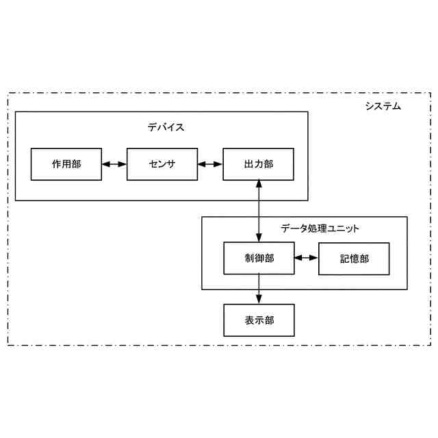 デバイスの出力部に接続され、センサからの信号を処理するためのデータ処理ユニットと