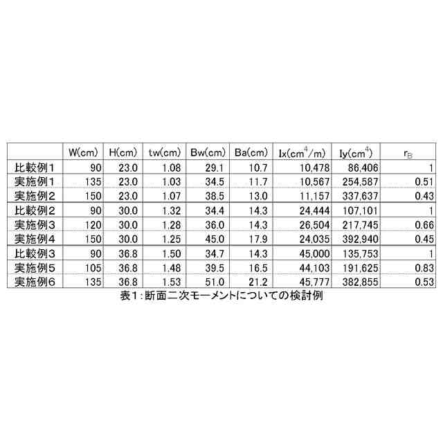 有効幅Wが105cm以上であり、かつ前記断面高さ方向に延びる強軸回りの断面二次モーメントIyが191,000cm
