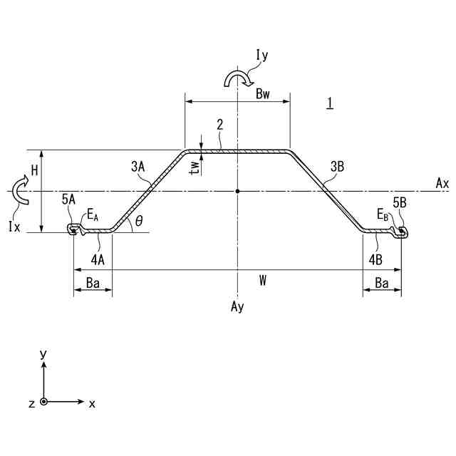 ここで、上記の特許文献1から特許文献3で言及されているハット形鋼矢板の断面二次モーメントは、いずれも弱軸回りの断面二次モーメントである。この弱軸回りの断面二次モーメントは、打設後のハット形鋼矢板によって形成される鋼矢板壁が地中で土圧や水圧に対抗するときの剛性を表すため、ハット形鋼矢板の性能の指標として重要である。