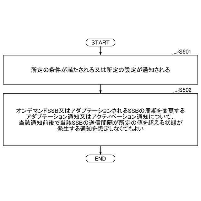 【解決手段】端末は、オンデマンドSSB(SS/PBCH block)が設定されているとき、オンデマンドSSBの周期を変更する通知を基地局から受信する通信部と、前記通知によって、SSB又はオンデマンドSSBの送信間隔がある間隔を超えることを想定しない制御部とを有し、前記通信部は、前記通知に基づいて設定されるオンデマンドSSBを前記ある間隔以内で前記基地局から受信する。