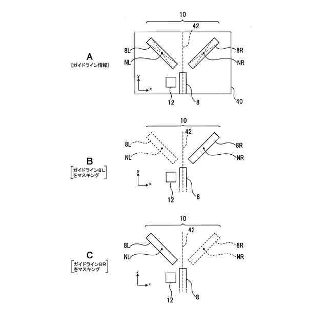 前記ガイドライン情報に含まれる複数の前記ガイドラインを識別する識別値を演算し、各識別値の位置によりマスキングすべき前記走行方向と異なる情報を判断する機能を含む、請求項7に記載のプログラム。